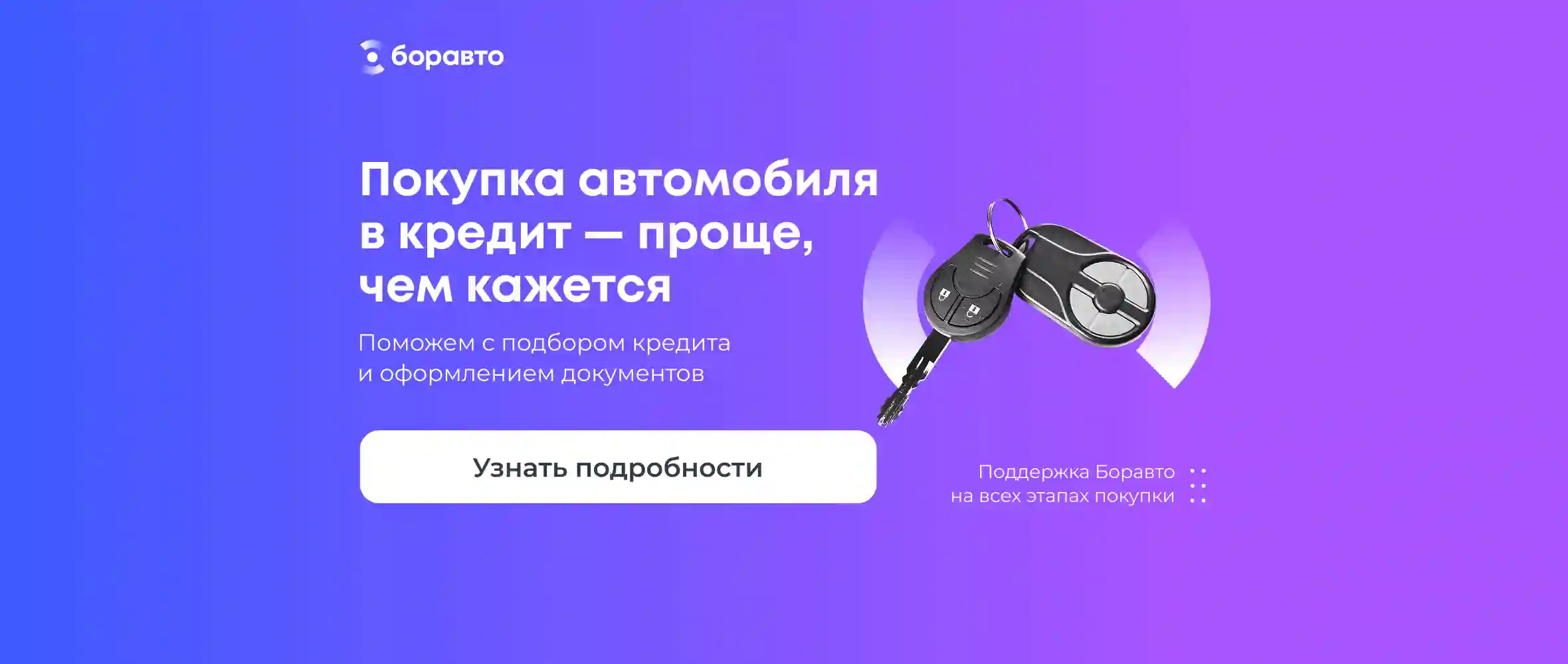 Воспользуйтесь Брокерской услугой от Боравто. Поможем подобрать оптимальные кредитные условия, подготовим документы и сопроводим сделку от первого вопроса до получения автомобиля.
